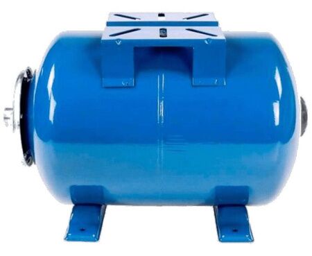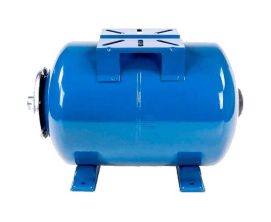 Гидроаккумулятор предназначен для поддержания и плавного изменения давления жидкости в системе водоснабжения, он обеспечивает защиту системы от гидроударов, ограничивает количество включений насоса, при отключении электроэнергии накапливает и выдает под давлением некоторый запас воды. Горизонтальный гидроаккумулятор оснащен усиленной площадкой для установки насоса. При использовании совместно с реле давления, позволяет создать автоматическую станцию на базе погружного или поверхностного насоса.