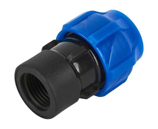 Муфта переходная - обжимной фитинг используется для соединения труб из ПНД с резьбовыми элементами.. Подходит для питьевых и технологических трубопроводов. Изготовлен из полипропилена, устойчивого к внешним воздействиям и деформаци