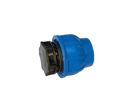 Заглушка компрессионная концевая для труб ПНД (полиэтилена низкого давления). Монтаж системы технического трубопровода либо трубопровода для питьевой воды довольно простой. Труба ПНД вставляется через втулку запрессовывающую диаметром 40 мм в компрессионную заглушку, фиксируется накидным кольцом, гайка плотно закручивается. Для того, чтобы система была герметична, для защиты системы от протекания, используется уплотнительное кольцо.