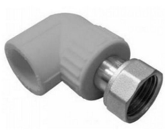 Колено ПП с нак. гайкой 20х3/4″, серый Valfex представляет собой разъемное соединение между трубой из полипропилена и металлической или фитингом с наружной резьбой и позволяет выполнить самый сложный монтаж по присоединению сантехнического оборудования за счет накидной гайки с внутренней резьбой.
