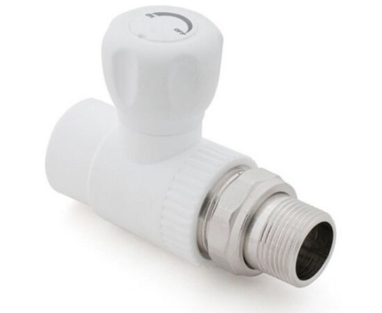 Кран шаровый ПП для радиатора 20х1/2" прямой, белый РосТурПласт