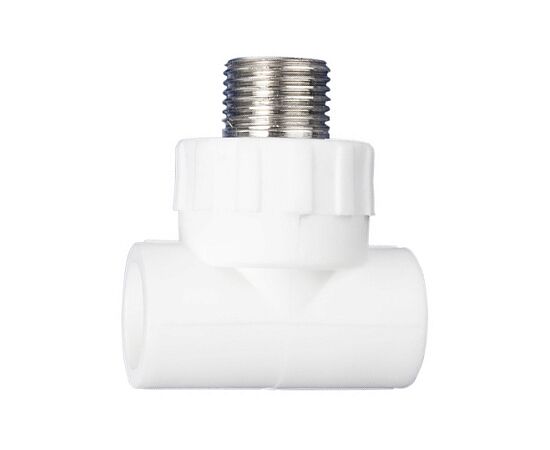 Трехсторонний полипропиленовый фитинг для присоединения к полипропиленовому трубопроводу компонента инженерной системы с резьбовым подключением. Резьба фитинга - наружная трубная.