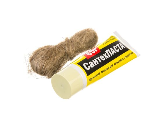 В комплект с пастой входит 14 гр. длинноволокнистого чесанного льна. Для сборки резьбы отсоедините небольшую прядь льна и смажьте её пастой, после чего намотайте полученную прядь по ходу резьбы и соберите соединение. Преимуществом льна является то, что со временем он набухает и делает резьбу герметичнее.