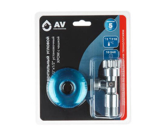 Кран вентильный угловой 1/2"х1/2" установочный ХРОМ с чашкой AV Engineering