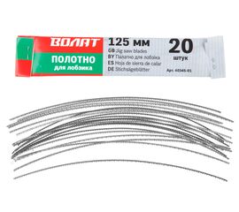 Рабочее полотно прочное и износостойкое, изготовлено из инструментальной стали Материал стали: СТ65Г Длина , мм: 125 Высота, мм: 1,5 Упаковка, шт:20 Шаг зубьев, мм:1,06+0,15 Высота зуба, мм: 0,5 Исполнение зубьев: волнистые Подходит к Лобзику ручному 250х135мм ВОЛАТ арт. 40340-25