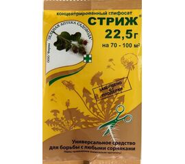 Гербицид сплошного действия СТРИЖ - истребитель сорняков успешно борется с любыми самыми злостными сорняками. Применять для тотального уничтожения любых, самых трудноискореняемых сорняков: осот, пырей, сныть, крапива, одуванчик, амброзия и др., вдоль заборов, дорожек, построек, теплиц на...